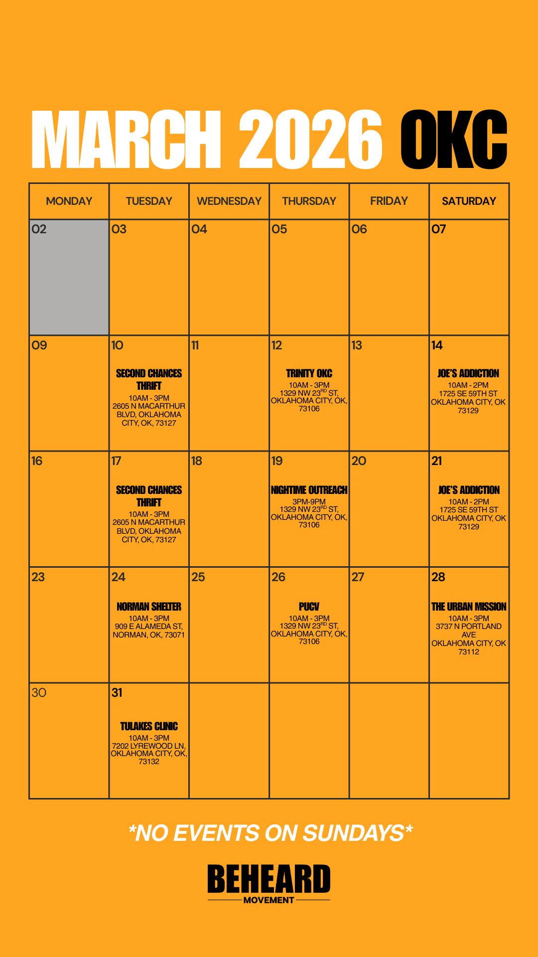 If you’re interested in having our mobile shower and laundry trailer visit your location, please fill out the partner request form at bhm.guide or email us at okc@beheardmovement.com.